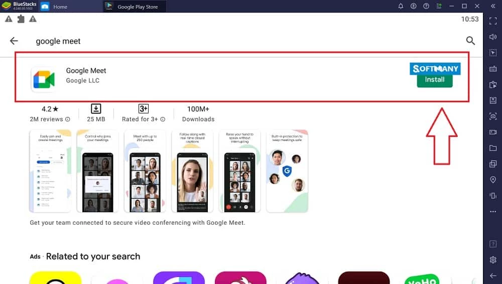5. اكتب اسم تطبيق Google Meet في شريط البحث في متجر Play .